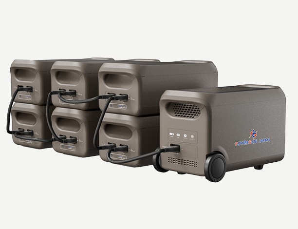 約7000Whの超大容量。災害用備蓄資材、イベント電源などに最適。UPS機能搭載。