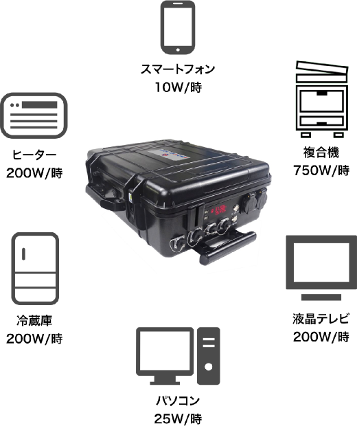 キャリーパワーステーションシリーズのなかでの最大容量のモデル。大容量の特長を活かし、災害避難所の備蓄資材として、屋外イベント電源としてもご活用いただけます。